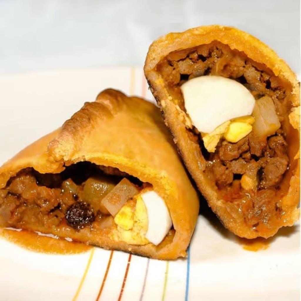 Bolinhos recheados com um suculento recheio de carne moida com passas e leve toque apimentado, coberto com açúcar e canela